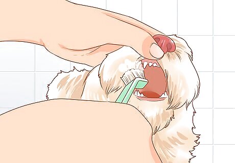 Brush the dog's teeth. Like a person, a dog needs its teeth brushed to avoid decay, remove plaque, and prevent gum disease. Brush your Westie's teeth daily, if possible. Use a dog toothbrush and toothpaste, available at any pet store. Never use human toothpaste, which can make your dog very sick.