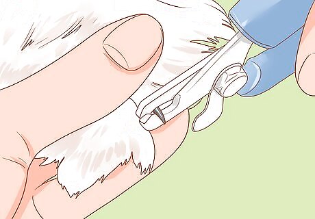 Trim your Westie's nails regularly. Nail care is important for Westies, as their nails are strong and fast growing. Keep an eye on the nails and cut them whenever they begin to get long. Westie's nails can split and crack if not kept trim and neat. Use a nail trimmer or grinder made for dogs. Don't use human nail clippers. Be careful careful not to cut their nails the quick. Cutting nails too short can be painful for the dog and cause bleeding. If you aren't comfortable cutting your dog's nails, have a groomer do it.
