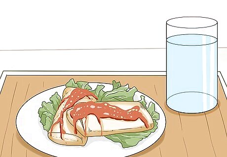 Take metformin with a meal and a whole glass of water. Metformin has a tendency to upset the stomach. To minimize the chance of this happening, it's best to take it on a full stomach. Drinking a full glass of water while you take it will also prevent stomach upset and it will aid with absorption. Do not chew, break, or grind up the medication to add it to a meal. Instead, take the tablet whole after you have eaten.