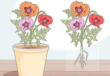 Remove the parent plant from its pot or dig it up gently. If your parent plant is in a pot, tip the container on its side and gently slide the soil and plant out of the pot. If the plant is in the ground, dig a wide circle around the plant, then carefully loosen the plant until you can pull it free. Try not to disrupt the root system of the plant so you don't damage the parent plant.
