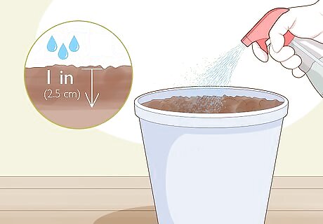Keep the soil moist as the plants grow. Every 2-3 days, stick your finger about 1 in (2.5 cm) into the compost to see if it's damp. If it feels dry, mist the container until the soil is damp. Continue doing this the entire time the plants are taking root.