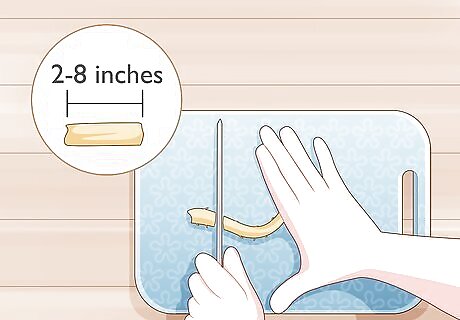 Cut your main root into 2–8 in (5.1–20.3 cm) pieces. The exact length of the cuttings won't matter much, but between 2–4 in (5.1–10.2 cm) is a good size for healthy growth. However, if you'd prefer them to be a little longer to fit the potting container you're using, that's fine. You can cut your roots up to 6–8 in (15–20 cm) if you like. If you look at a root cutting diagram you may notice that one end of the cutting has a diagonal edge. Cutting the bottom of each piece diagonally can help you keep up with the top and bottom of the piece, and it may help promote root growth.