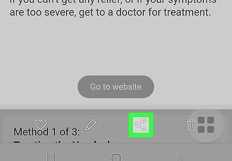 Tap Android Share to share the screenshot. It's the icon with three dots connected by lines in the screenshot notification that appears after you take a screenshot. This displays apps you can share the screenshot over (i.e. social media, email, photo editing app). Tap an app to automatically attach the screenshot to a social media post, direct message, email, or open it in a photo editing app. To send the app over social media or an email, select a recipient, compose a message, and tap the Post/Send icon.