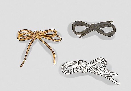 Use shoelaces with different sizes and textures. Laces with different sizes and textures can help a visually impaired child keep track of which one is the left lace and which one is the right lace. Making them distinctive will help them feel more confident as they learn the motions. Use any combination that you wish, as long as they are easily distinguishable by touch. For example, you could use a combination of round laces, wide flat laces, velvet cords, beading, bootlaces, string – get creative! Stiff laces that don’t flop over easily tend to work best for this.