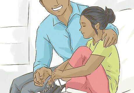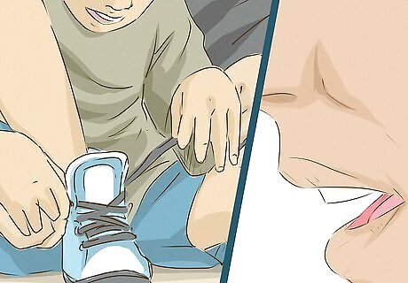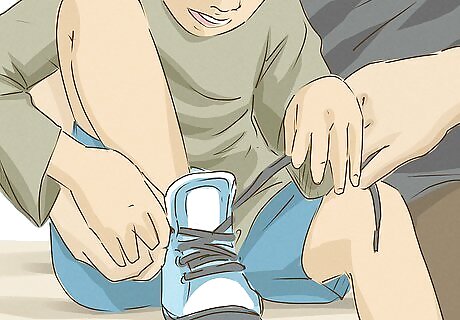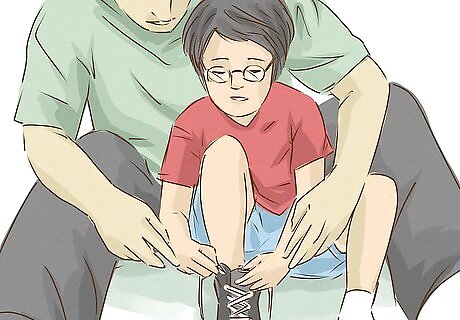 Ask the child to assist you. Until they’ve mastered the skill themselves, encourage your child to assist in whatever way as you're helping them get into their shoes. For instance, you could ask the child to help you loop a shoestring around your finger or place their hands on top of yours to feel the motions. Describe your actions clearly as they assist you.