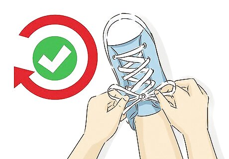Be patient and encouraging. If your child simply cannot learn to tie their shoes at this time, that’s ok! It takes time. Don’t let your child become discouraged and make sure you keep practicing occasionally so they don’t lose what muscle memory they’ve already learned up to this point. In the meantime, look for elastic shoelaces that can be "pre-tied" so the shoes can be easily slipped on. Hook-and-loop-fastened shoes will also work, but the elastic shoelaces look almost like regular ones, which may help your child feel less different at school.