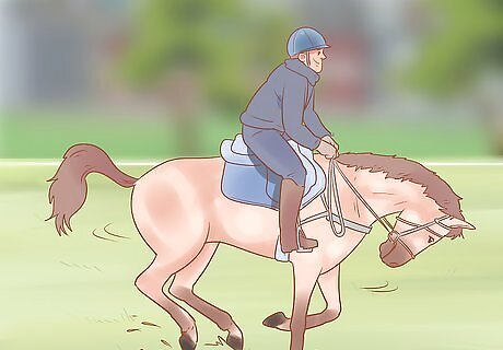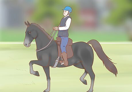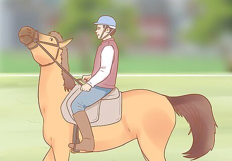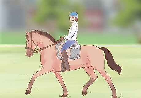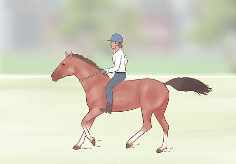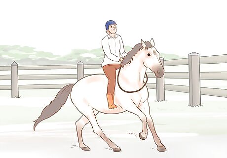 Make sure your horse can walk, trot, and canter at controlled speeds. Your horse will need to be under enough control that, whether you're walking, trotting, or cantering, you can ride it at a distance without your horse speeding up or having to be reined in. If your horse has trouble doing this, ride it around an enclosed space for a few minutes at a steady trot to help it find its rhythm. You may need to train your horse in basic controls and riding speed before you attempt to ride it tackless.