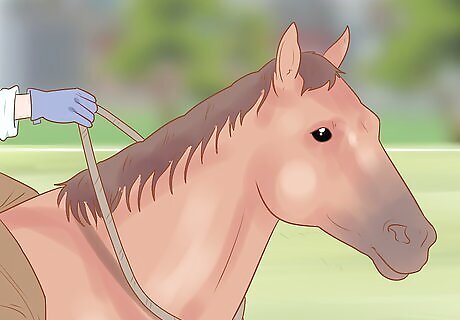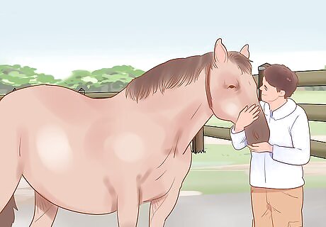Get your horse used to stopping on command. Lean back, putting your legs forward and saying "woah," and squeeze the reins if needed to tell the horse to stop. Then, praise it as soon as it does. Repeat this process until your horse is able to stop in response to you shifting your body weight and applying slight pressure. Your goal should be to be able to get the horse to stop without actually having to pull on the reins. The easiest way to praise the horse for stopping is to release all physical pressure and then verbally praise it while scratching along its neck and withers.