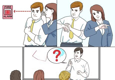 Allow students to make inferences about a conversation or interaction. Ask one of the school administrators to come into your room during class and have a whispered (fake) conversation with you. While speaking, make sure that both of you glance up at the fire alarm, and then consult your watches. When the administrator leaves, ask students, “What do you think we were just talking about?” Students will be able to infer that you and the administrator were “discussing” what time a fire drill will occur.