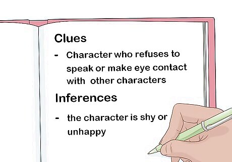 Ask students to write down “clues” that can lead to inferences about a text. If your students are visual learners, you can make a chart out of sheets of construction paper. It could have a column for “clues” (observations students make about a text) and “inferences” (the meaning your students draw from the observation). For example, if you’re reading a story to your students and the narrative describes a character who refuses to speak or make eye contact with other characters, your students can infer that the character is shy or unhappy.