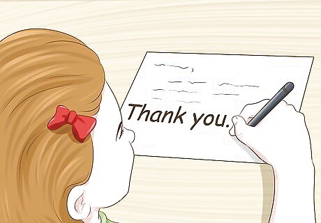 Have your children write thank you notes. When they are young, begin a practice of writing thank you cards or notes for any gifts that you or your child receives. Much like the daily gratitudes, this will help your child dwell on the good things in their life and foster an appreciation for them. Over time, this practice will become a regular occurrence when they receive something. With younger children, you can simply have them draw a picture and, as they get older, write more complicated letters.