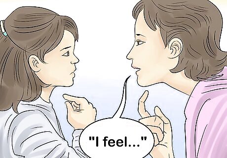 Help your child stay calm. Children often have difficulty regulating their emotions. When a disagreement surfaces, help your child stay calm during the conflict. Children may get angry or feel passionate. During these times, encourage your children to remember to stay calm. Teach your child to recognize messages from their body that indicate they might be getting frustrated. Do they start clenching their fists or does their face feel hot when they get frustrated? Helping your child identify these signals means they can use calming techniques before they lose control. Help your children learn techniques to stay calm. Have your child, for example, take a series of deep breaths, count to 10, or make an effort to relax their bodies. You can also remind a child to take a break from a discussion if they're getting worked up. For example, say something like, "You seem to be getting upset. Would you like to talk about this later?" Teach your child they sometimes have to be a bigger person. If a friend or family member is yelling or disrespecting them, tell your child to walk away instead of getting mad in return.