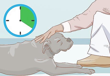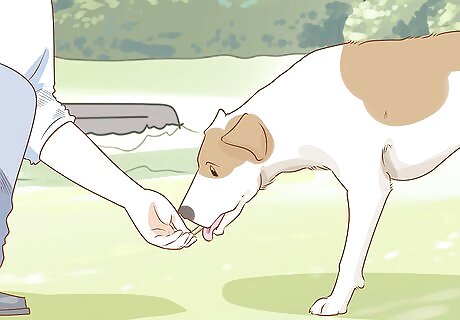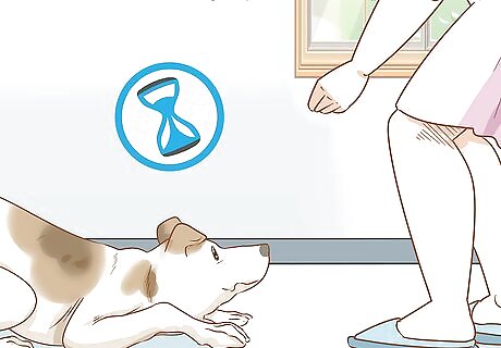 Practice for 20 minutes at least once a day. Keep practicing using treats and the command word for about 20 minutes. You might need to make your training sessions a little shorter if you’re working with a puppy or easily distracted dog. Try to schedule your training sessions when your dog is least likely to be distracted. Sights and sounds like people entering and leaving the house make it harder for your dog to focus on training.