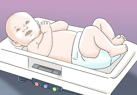 Weigh your baby at home. Regular bathroom scales will not show sufficient detail for your baby’s weight. Instead, buy a special scale designed to weigh infants. Keep track of your measurements so you can discuss them with your baby's doctor if necessary. Weigh your baby on a regular schedule to get an overall picture of weight gain and fluctuation. Avoid daily weighing or weighing multiple times per day unless instructed to do so by a physician for medical purposes, as weight naturally fluctuates. Posting a growth chart near your scale can help you keep track of which percentile your baby is in. Remember that it's more important that your baby is growing consistently than that he falls within a certain percentile.