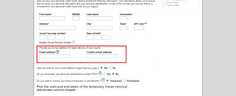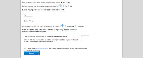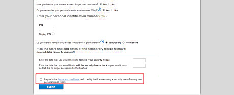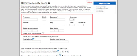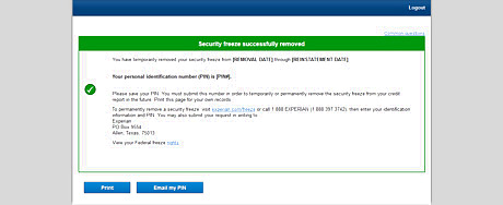 You should be taken to a page that says that your security freeze was removed. If you encounter any errors, then check to make sure that you entered all of your data in correctly.