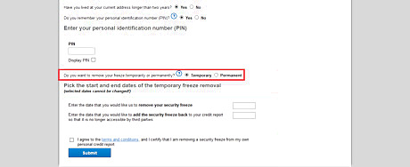 If you plan on permanently lifting the security freeze, then select, "Permanent", and skip the next step.