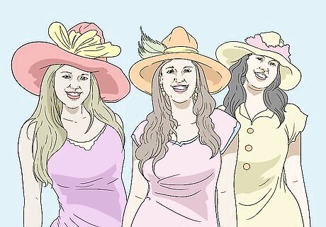 Dress in brightly-colored formal attire. The Kentucky Derby is a formal event, and people usually dress the part. Since the event is in the spring, bright colors are the perfect way to match the atmosphere. Since you’re the host, take extra steps to dress the part and get your guests into the mood. Common clothing choices are light-colored pants with pastel shirts and jackets. Ties aren’t a necessity since it may be warm out, but they can accent your outfit nicely. Floral sundresses or bright solid-color dresses are popular choices as well. Remember the weather may be hot. Dress so you’re comfortable.