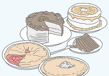 Finish the meal with Southern-themed desserts. Keep dessert within the same theme as the meal by serving Southern options. There are tons of choices for good Southern desserts to pair with the meal. Choose a few that you know your guests will love and make or cater them. Pies and cobblers are popular Southern desserts. Pecan pie, peach cobbler, and apple crisp are good choices. Any variety of cakes and pies will also go well with the meal.