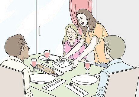 Mix mint juleps, the official drink of the Kentucky Derby. This is a simple and refreshing drink that’s easy to make for your guests. For a single serving, crush up 1 tsp (5 g) of sugar and a few mint leaves in a glass. Then add a splash of seltzer water, ice, and 2 oz (59 ml) of bourbon whiskey. Stir the mixture together and enjoy. If you’re having a large party and don’t want to keep mixing drinks, you can also make a large batch of mint julep and serve it as a punch. If your guests are drinking, make sure everyone stays safe. Stop serving someone if they’ve drank too much and don’t let anyone drive if they’re intoxicated.