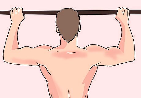 Do pullups. The fourth event is pull ups. This will be from full hang to your chin above the bar. You must perform 8, a competitive score is closer to 20. There is no time limit but you may not let go or touch the ground.