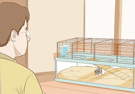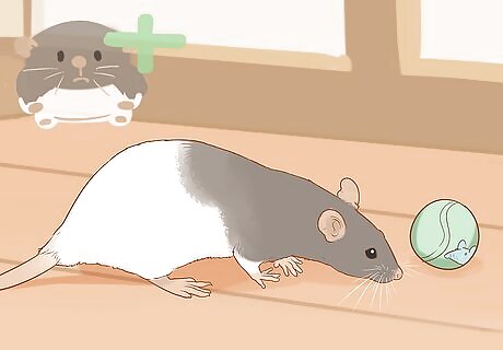 Teach behaviors using hand signals. These are often used for training dogs, but incorporating hand signals into training sessions with your rat can help it understand what you want it to do. For example, to teach your rat to sit, you could hold your hand out straight and turn it so your palm is facing up. Then, lift your hand up above your rat’s head so it will look at it. Make sure to reward your rat with a treat after it performs the desired behavior. EXPERT TIP Brian Starr Brian Starr Rat Specialist & Breeder Brian Starr is a Rat Specialist and Breeder and the Owner of OC Dumbos out of Central Florida. As America’s only breeder of pet Roof Rats, Brian and OC Dumbos specialize in rat breeding, training, and care. Years of experience and several generations of careful breeding have allowed Brian and OC Dumbos to create a line of tame Roof Rats, bred to make friendly, fun pets. In addition to offering rat accessories and training resources, OC Dumbos also offers free Roof Rat adoptions. Brian Starr Brian Starr Rat Specialist & Breeder Reward training wins with tiny treats. Hide healthy treats around their enclosure as positive rewards to motivate them to willingly learn tricks and tasks. Treats will provide consistent, food-based reinforcement during play time.