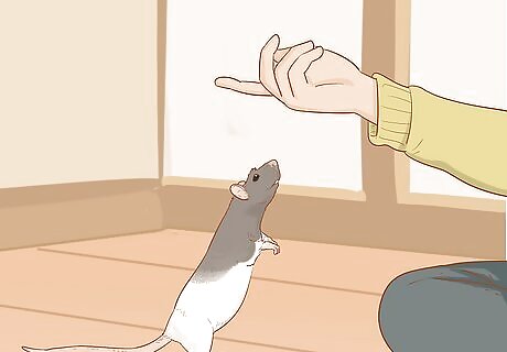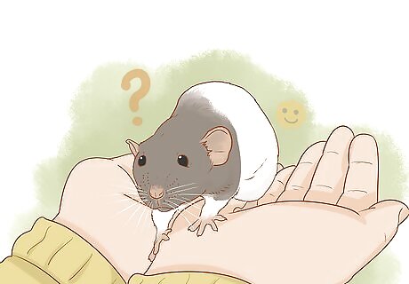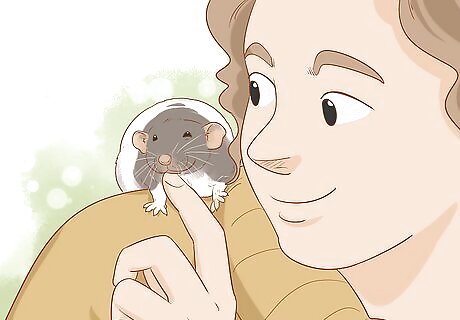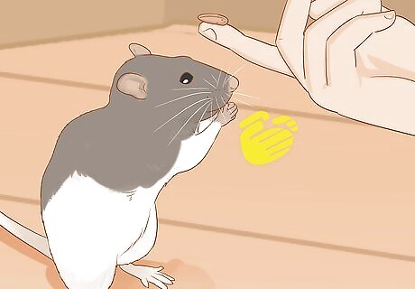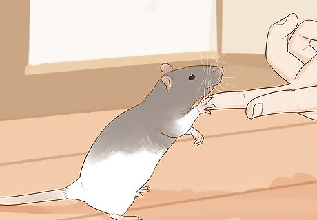 Consider teaching a rat to shake hands. To make your rat shake your hand, put a treat in your hand near the rat's paws. Then slowly and very gently, take your rat’s paw and put it on the treat. Say "shake" and then feed the treat to your rat. You could also try holding the treat in your closed fist with 1 finger outstretched as you do this. Allow your rat to grip or “shake” your outstretched finger.