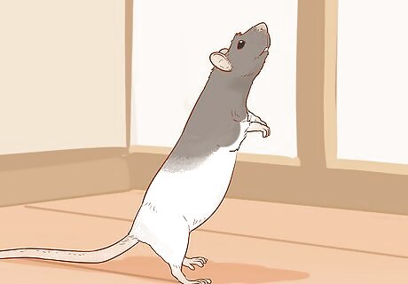 Train the rat to stand. Place the rat on a flat surface. Take a treat and say “stand.” As the rat sniffs the treat, lift the treat to guide the rat upward. Your rat will probably stand up to follow the treat in your hand. When it stands, give it the treat and praise. Each time you get your rat to stand, raise the treat higher to try to get them to stand straighter. When you start to phase out the treats, continue to raise your hand as if you’re holding something in it.