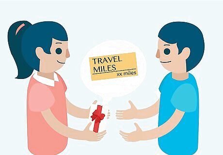 Gift your travel miles to another person. Some airline loyalty programs allow you to transfer your accrued miles to another person, provided that that person holds a membership account with that airline. Delta, for instance, allows you to send your miles to a maximum of 4 individuals. If you would like to send your miles to someone else, you must provide that person’s name and account number to complete the transaction. You must have a certain number of miles before you can gift them to another loyalty program member. Most airlines require a minimum of 1,000 miles before a transfer can take place. Gifting your miles to another member typically cannot be canceled once the transaction is completed.