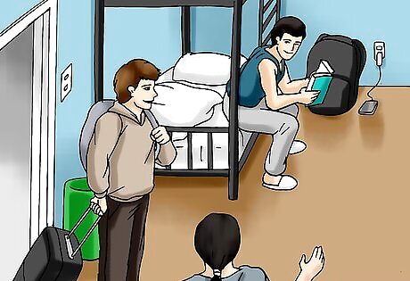 Choose a hotel. Find a hostel at your destination by going to a listing website, such as Hostelworld. Read through the descriptions carefully and make a list of those locations in your price range. Then, take a look at the recent reviews. Hostels are often good options for travelers who enjoy a lively, young, group-friendly atmosphere. Be aware that many hostels place multiple people in the same room, even from different parties. Make sure that you are comfortable with this before booking. Some hostels have communal kitchen or laundry spaces which can save you some serious money when traveling.