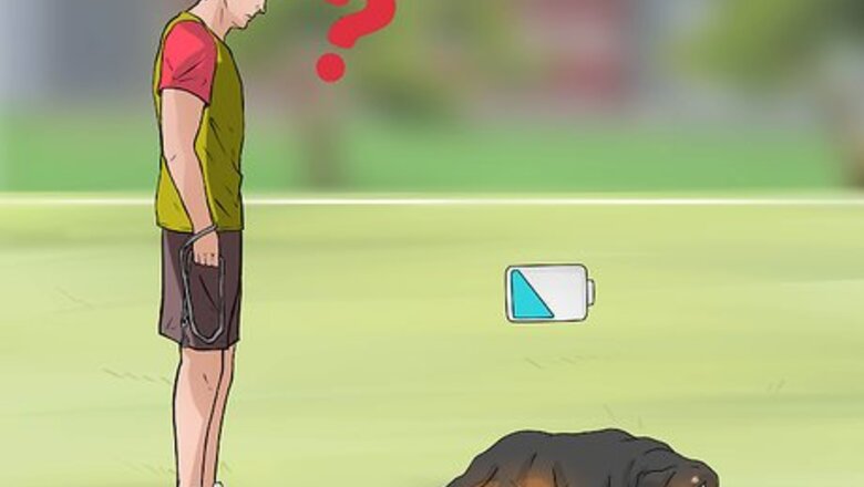 Look for changes in your Rottweiler’s activity level. With dysplasia, your Rottweiler’s joints become painful from normal wear and tear. If your Rottweiler’s joints are bothering him, he’ll start slowing down or completely avoid certain activities. For example, he might be unable to handle long walks and may refuse to go on walks at all. In addition, he may be more reluctant to go up and down stairs. If your Rottweiler used to excitedly greet you at the door, he might walk more slowly toward the door, or simply stay where he is.
