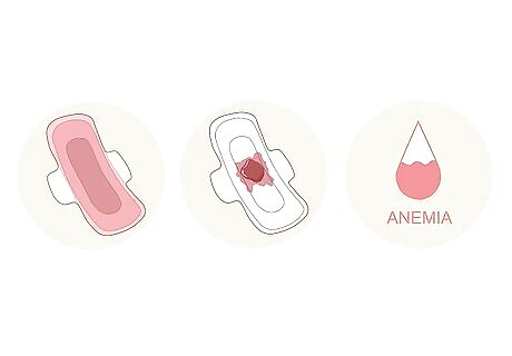 Tell your doctor about any symptoms of menorrhagia you're having. Symptoms of menorrhagia will resemble normal period symptoms, except that they will be more extreme. The bleeding will be heavier and potentially last longer and the cramping and pain will be stronger or longer lasting. Some other signs include: Excessive bleeding of over 80 mL (2.7 fl oz) over the course of menstruation Needing to change your pad or tampon every 1 to 2 hours Presence of large blood clots within the period blood Anemia symptoms, such as fatigue, dizziness, drowsiness, paleness, muscle weakness, and shortness of breath.