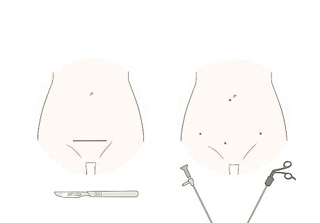 Talk to your doctor about a myomectomy if you have severe fibroids. In this procedure, your doctor will remove your fibroids manually. This is done either through your abdomen or through your cervix. Your doctor will determine what type of surgery to do depending on the size of the fibroids, their exact numbers, and their location. This is a good treatment option for those that are constantly bleeding due to fibroids bursting and draining. The first method is done laparoscopically, which requires abdominal surgery to remove the fibroids. The other method is done hysteroscopically and is performed through the cervix.