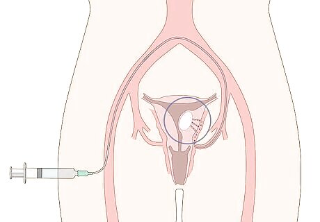 Get ultrasound ablation as an alternative to uterine artery embolization. Ultrasound ablation is another procedure used in case of fibroid formation. Your doctor may suggest it over uterine artery embolization because it requires no cutting of the thigh. Instead, it uses ultrasound waves that are able to shrink the fibroids directly. If the fibroids are reduced, this will decrease the excess blood in the uterus, which in turn will decrease the chance of excess menstruation.