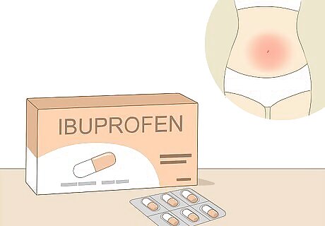Take a non-steroidal anti-inflammatory drug (NSAID) for pain. Examples of common NSAIDs include ibuprofen, naproxen, aspirin, nabumetone, and mefenamic acid. Follow the directions on the packaging for dosing and how often to take the medication. In general, take them when needed at a maximum dose of three times daily, after meals. For example, the recommended dose of ibuprofen for pain is 200 mg every 2-4 hours, but you shouldn't take more than 1200 mg in a 24-hour period. For naproxen, start with 250 mg two times a day and, if necessary, increase the dosage to a total of 1000 mg in a 24-hour period. If you’re taking mefenamic acid, take 500mg three times per day. If you are still experiencing pain even with the maximum dosage, talk to your doctor before increasing it further. NSAIDs are widely used in cases of menorrhagia due to their strong effect as painkillers and anti-inflammatories. NSAIDs target the muscles around the uterus, which makes them the perfect choice for abdominal cramps and lower back pain. Be cautious when taking NSAIDs. They can cause gastric upset, such as nausea, vomiting, and peptic or gastric ulcers. Women suffering from renal or hepatic disorders and women who are currently taking blood thinners such as Warfarin should consult with their doctor before using NSAIDs.