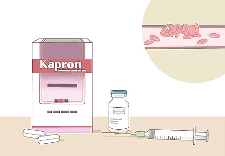 Ask your doctor about tranexamic acid to reduce your bleeding. Your doctor may prescribe this medication if you have been diagnosed with menorrhagia. Tranexamic acid is commonly used to treat any hemorrhage disorders, including menorrhagia. Take it twice daily or according to the doctor’s prescription. Tranexamic acid stimulates the formation of blood clots, thereby reducing the excessive bleeding caused by menorrhagia. Tranexamic acid is available as Kapron in tablet or injection form.