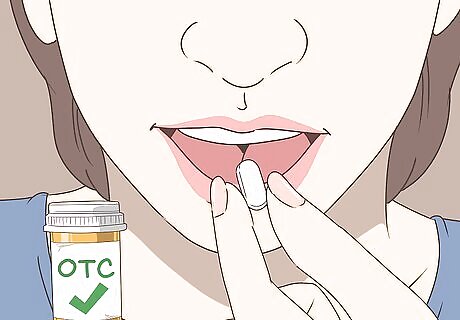 Take an over-the-counter pain reliever to reduce throat pain and body aches. If you can take the pain medication with food. Acetaminophen (such as Tylenol), naproxen (Aleve), or ibuprofen (such as Advil or Motrin IB) are all fine. Taking aspirin when feverish can put children and teens at risk for Reyes' Syndrome. It is almost nonexistent in adults.