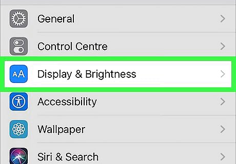 Tap Display and Brightness. This button has differently sized "AA" icon next to it that you can find in the third grouping.