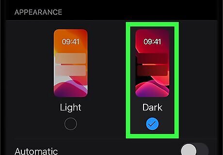 Tap to choose Dark. This will change all the bright colors for darker colors in available apps, including Instagram.