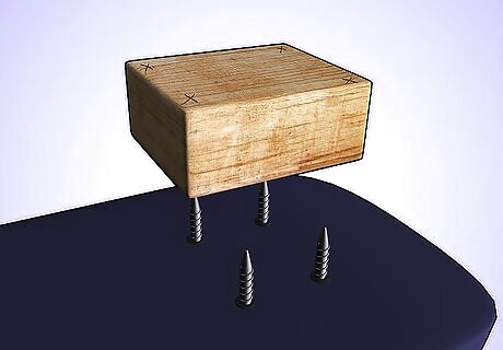 Secure the deck to the blocks using the 3-4 inch (7.5cm-10cm) screws. Drop the screws through the deck holes and drill them into the wooden blocks. Be sure to drill them into the side that does not have the pre-drilled area.