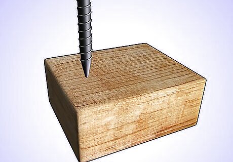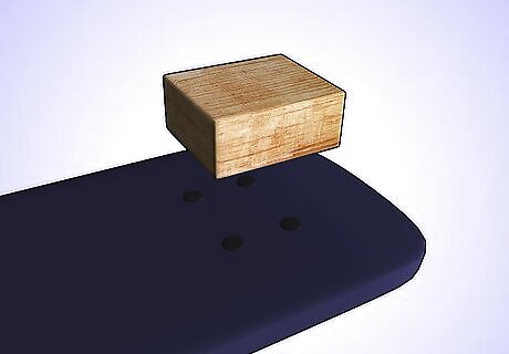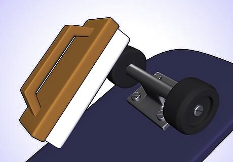 Create the mounting system for your skateboard hat hanger. The idea is to drill a longer screw through the deck hole and into a wooden block. This block will then be mounted to the wall. To make the block: Obtain mounting blocks to be used for the skateboard deck. You can head to the hardware store and explain that you need two or three 2” (5cm) chunks of wood for mounting a skateboard, or you can grab some scrap wood and measure it yourself. Ask the hardware employee to cut three 2” (5cm) x 1.5” (3.8cm) chunks from the piece of wood you choose. Either way, confirm that you have 2” (5cm) pieces of wood, which tend to be the best size for mounting. Sand the blocks. If the hardware store doesn’t do this for you, use sandpaper to smooth the blocks before proceeding.