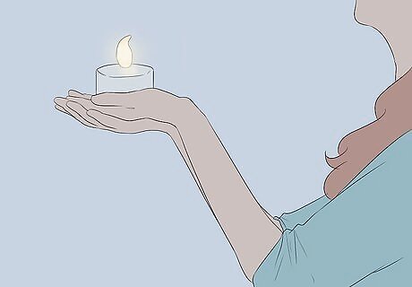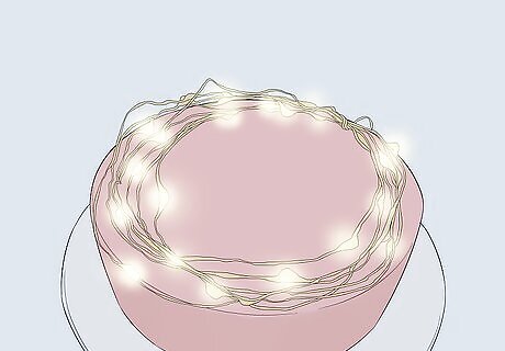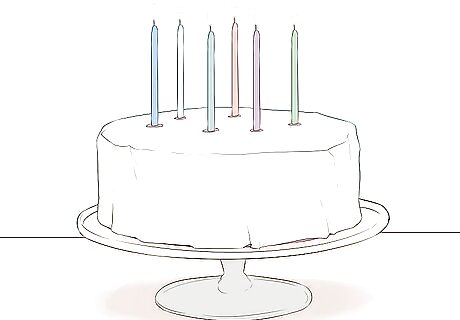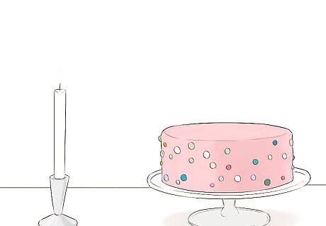 Purchase battery run light switches. These consist of a switch and switch plate found on the wall. They are intended to illuminate out of the way places that aren't near electrical outlets, but they are a fun item. Make a mock up of a cake from a turned over box covered in paper decorations, or even frosted to resemble a real cake. Set the light switches on the top of the phony cake, quash the room lights and turn the switches. They ought to cast a festive glow. Do some clever thing about turning them off as wishes are made, and nobody will miss candles.