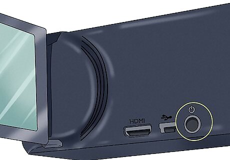 Turn the camera on with the Power button. To set up your camera, of course, you have to turn it on first. Hit the Power button and the display should light up. The Power button is usually under the LCD screen, so open that up to access all the controls. If the camcorder won’t turn on, double-check to make sure the battery is connected properly. If it is, then you might have to charge it more.
