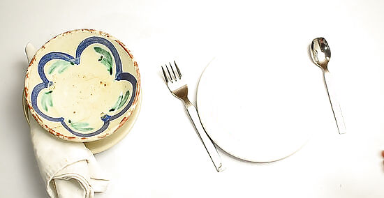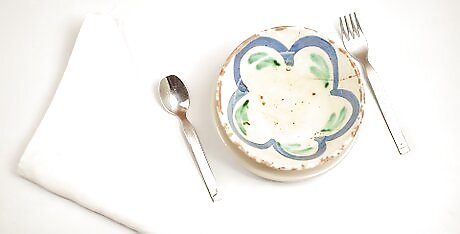Set your fork and spoon beside your plate if you haven't already. If your fork and spoon are not already in their proper positions, they should be in front of you. Place the fork onto the table to the left of your plate, and the spoon onto the table to the right of your plate. Your doily and bowl should now be resting above your fork.