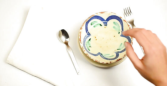 Grasp the finger bowl and place it to the top-left area of your place setting. If your finger bowl came with a doily—a piece of lace paper that acts as an ornamental mat—grab it along with your bowl. Be sure to place your bowl and doily to the left, as the right side of your place setting is reserved for coffee. If you don't know where to place the bowl, look for the area where your bread plate was located prior to being cleared by the server for dessert.