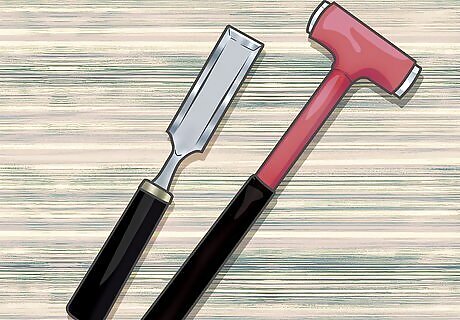 Obtain a mallet/hammer and a set of chisels. Hardware stores should have whole sets of chisels and various hammers in stock. Even a cheap set of chisels can last you a lifetime if used properly. The hammer/mallet must be made of a soft material such as wood, rubber, or plastic to dampen and prevent damage to the chisel.