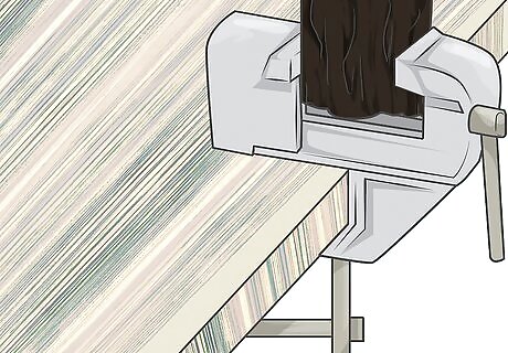 Clamp down or secure the wood piece to the vice on the workbench. It is best to work on a firm surface that can handle enough weight and sturdy enough when you use force. Avoid damaging or making dent marks when clamping the wood. Do not tighten the vice too hard. Use plastic or another piece of wood between the clamps and the work-piece to spread the pressure area to avoid leaving marks on the wood.