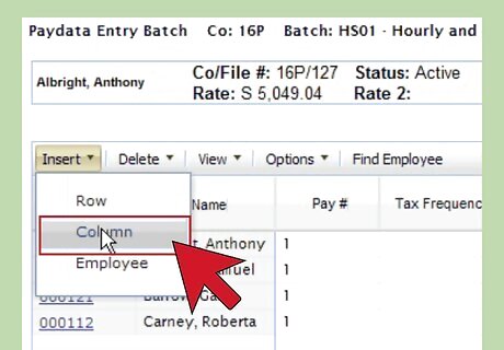 Process one-time payroll changes. The system keeps salary and tax data for each employee and automatically calculates this information based on the number of hours you input. Also, employees set up for Automatic Pay automatically receive a paycheck. However, sometimes you need to make one-time changes. You can manually input these changes in the paydata grid. If an employee is set up for Automatic Pay but you need to change their salary or hours for this pay period, include the employee in the batch. Input the appropriate salary information in the paydata grid. This will override the Automatic Pay for the employee for this pay period. To input one-time deductions, such as a contribution to the United Way, click on “insert” and select “column.” In the popup window, select “Adjust Deduction” for the Paydata Field and choose the type of deduction for “Code/Type.” The name of the column heading will automatically update. Click “done,” and you will see the column in the paydata grid. Enter the dollar amount in that column for the employee.
