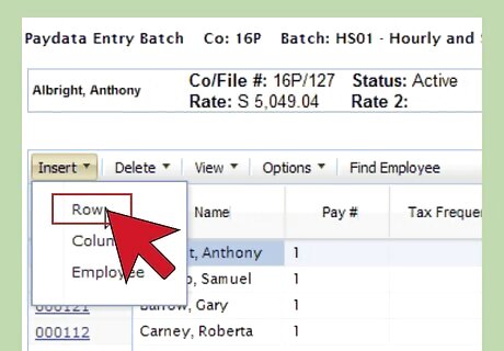 Add additional checks for bonuses, commissions, retroactive pay or advance pay. Select the employee for whom you want to create the additional check. Information for that employee’s regular pay for this pay period is already entered. Now, enter a second row for that employee to create a new check. Click on “insert” and select “new row.” A second row will appear with the same employee name. Now you can enter paydata for the additional check. Enter the tax frequency information, which calculates taxes based on the type of pay. For example, bonuses are taxed at different rates than regular pay. Find the column that describes the type of pay (such as “bonus” or “retroactive pay”) and enter the dollar amount.
