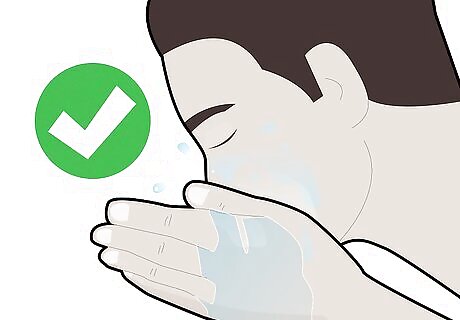 Rinse your skin or flush your eyes if you got spray on you. Wash the area with cool water as soon as possible. Unless the spray gets directly into your eyes or you inhale a direct blast, it's not dangerous, but you will be uncomfortable for about an hour. If the spray does get into your eyes, flush them out for at least 15 minutes. You may need to see your doctor for eye drops to help ease the stinging, but it's unlikely to do any lasting damage unless you're unable to rinse away the spray within a few minutes. If you inhale a direct blast of the spray, you could experience severe coughing. If you have a respiratory illness like asthma, this could cause you to go into respiratory distress. If that happens, seek medical assistance immediately. Otherwise, try to take slow, deep breaths until the discomfort goes away.