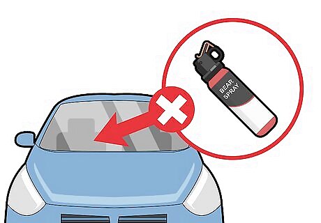 Do not carry bear spray in the passenger compartment of your car. Temperatures inside a vehicle can be much hotter than those outside, and the inside of a car can easily reach 120°F or more. If the bear spray explodes in your vehicle, you could be injured by debris, and the spray could potentially cause the driver to crash. Do not leave the bear spray in your trunk for long periods of time, either. Even if you’re running the air conditioner, you could forget the spray is in the car if you stop somewhere, allowing the vehicle to heat up.